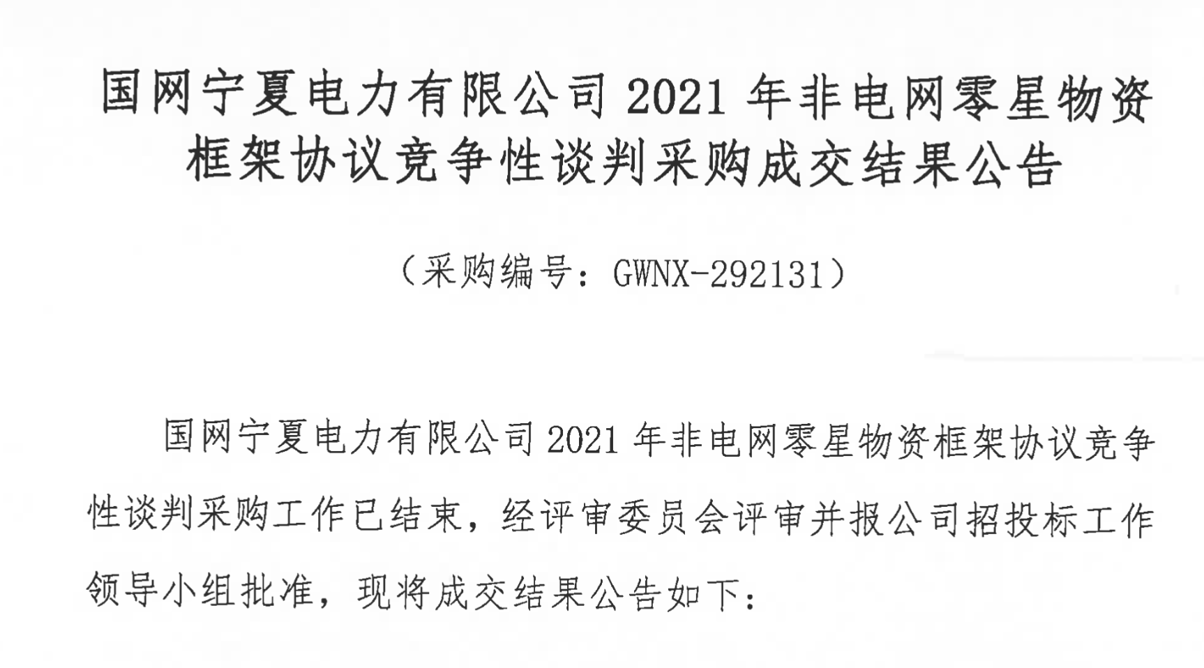 恭喜我司中標國網寧夏電力電商化采購
