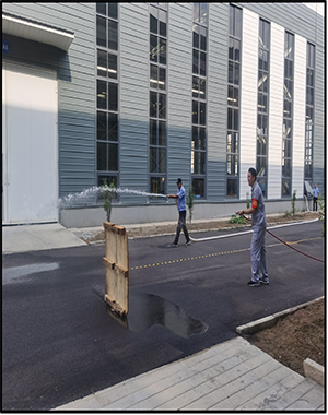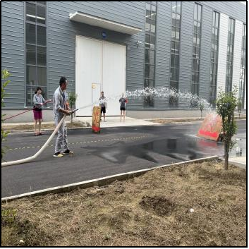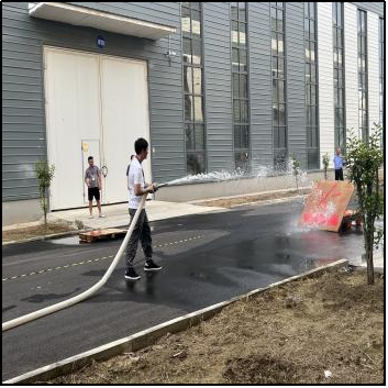 應急救援組在組長陳鵬輝的帶領下趕到現場,並組織公司義(yi) 務消防隊員第1組人員使用A廠房 78#立柱區消火栓進行滅火、第2組人員使用B廠房6#立柱區消防軟管進行滅火。(1、2組人員滅火完成後更換場地進行2次演練,確保義(yi) 務消防隊員都能夠熟練掌握消防軟管和消火栓的正確使用方法),其他6組按照同等演練方式操作;