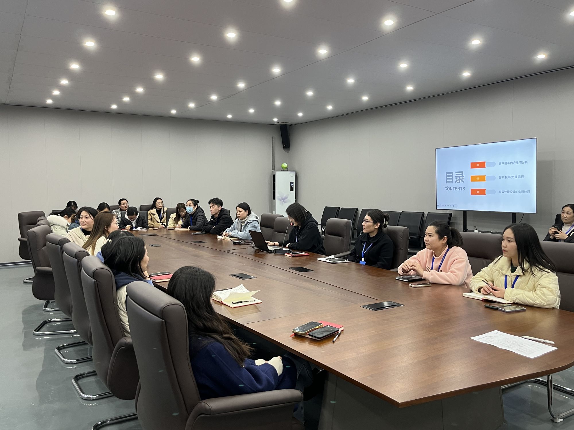 為進一步提高員工業務技能水平,豐富員工的工作知識,公司於2023年3月2日下午組織了關於《有效處理客戶投訴》的培訓,對於這次的培訓,公司員工展現出了濃烈的興趣,對客服部日常所要麵對的問題展開了思索。