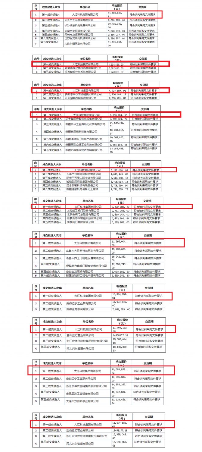 共中標11個標段,含電氣類、管道附件類、閥門類、泵件類、安全防護類,區域覆蓋全國