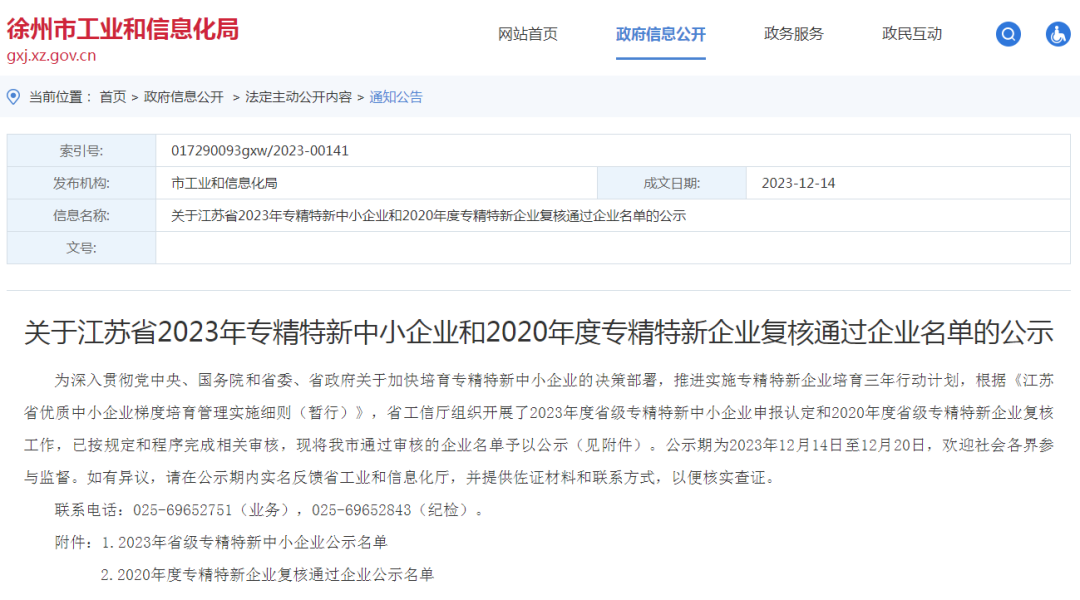 豪运国际科技集團上榜2023年江蘇省專精特新中小企業名單!