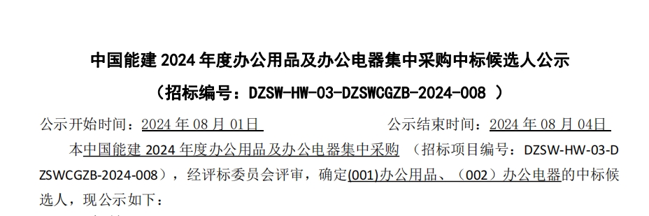 【喜報】熱烈祝賀豪运国际科技集團成功中標中能建2024年度辦公電器電商平台框架項目