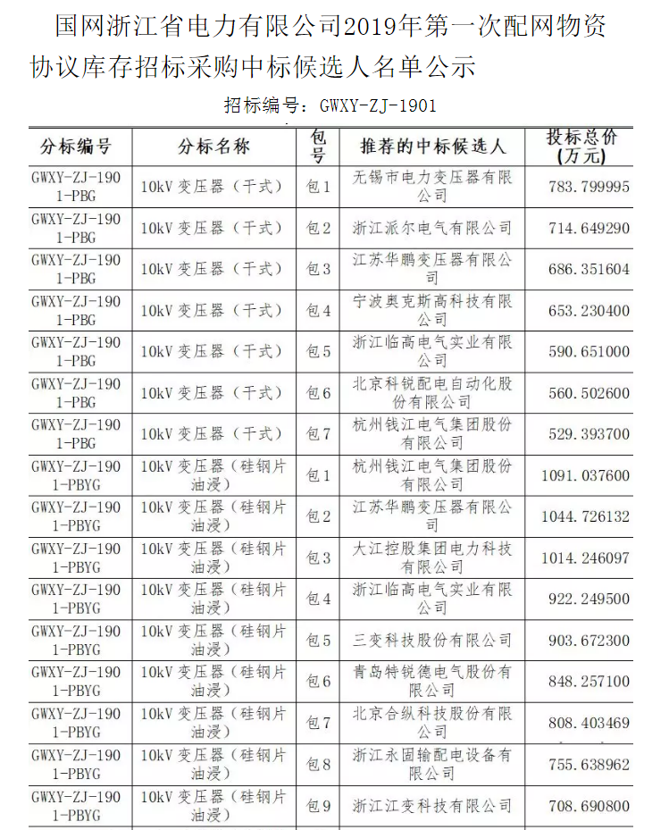 恭喜我司中標國網浙江省電力有限公司2019年第一次配網物資協議庫存
