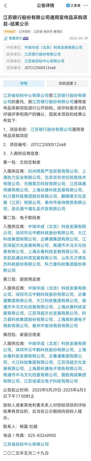 【喜報】恭喜我司成功中標江蘇銀行股份有限公司通用項目