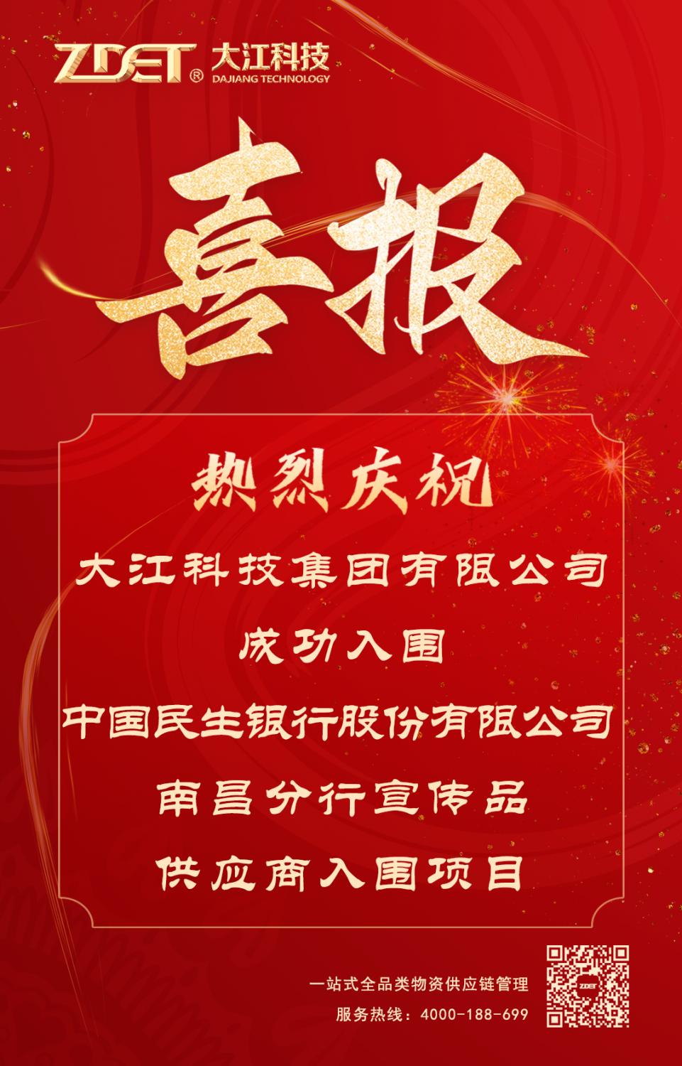 捷報丨豪运国际科技集團有限公司成功入圍中國民生銀行股份有限公司南昌分行宣傳品供應商入圍項目