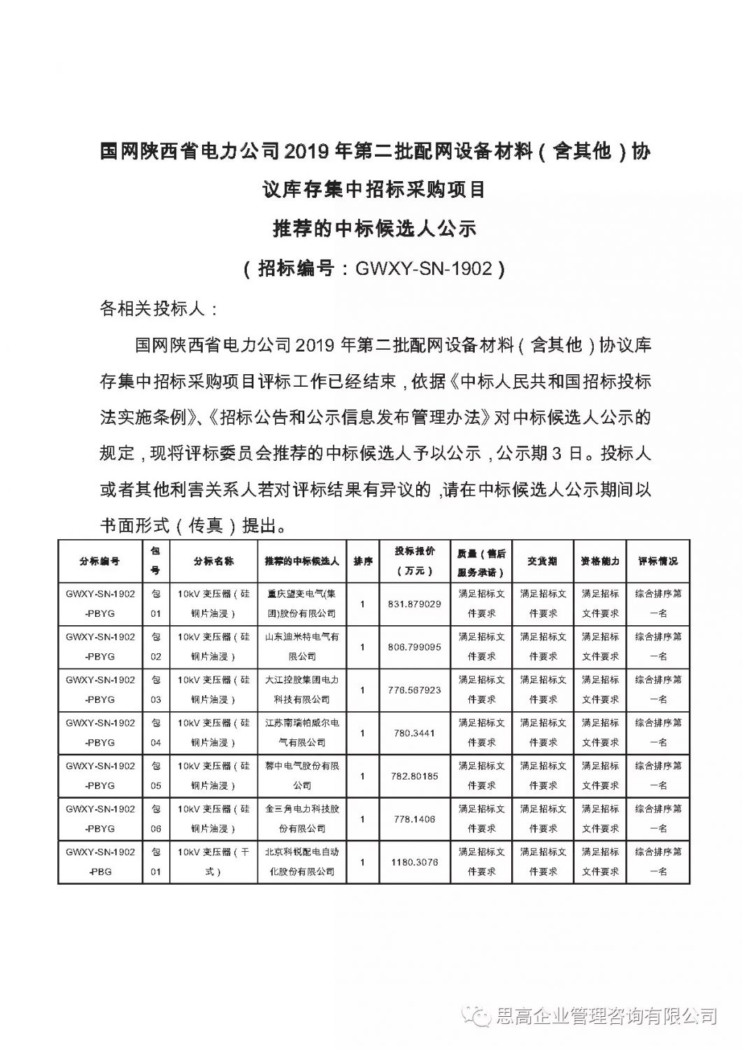 恭喜我司中標國網陝西省電力公司2019年第二批配網設備材料協議庫存集中招標采購項目