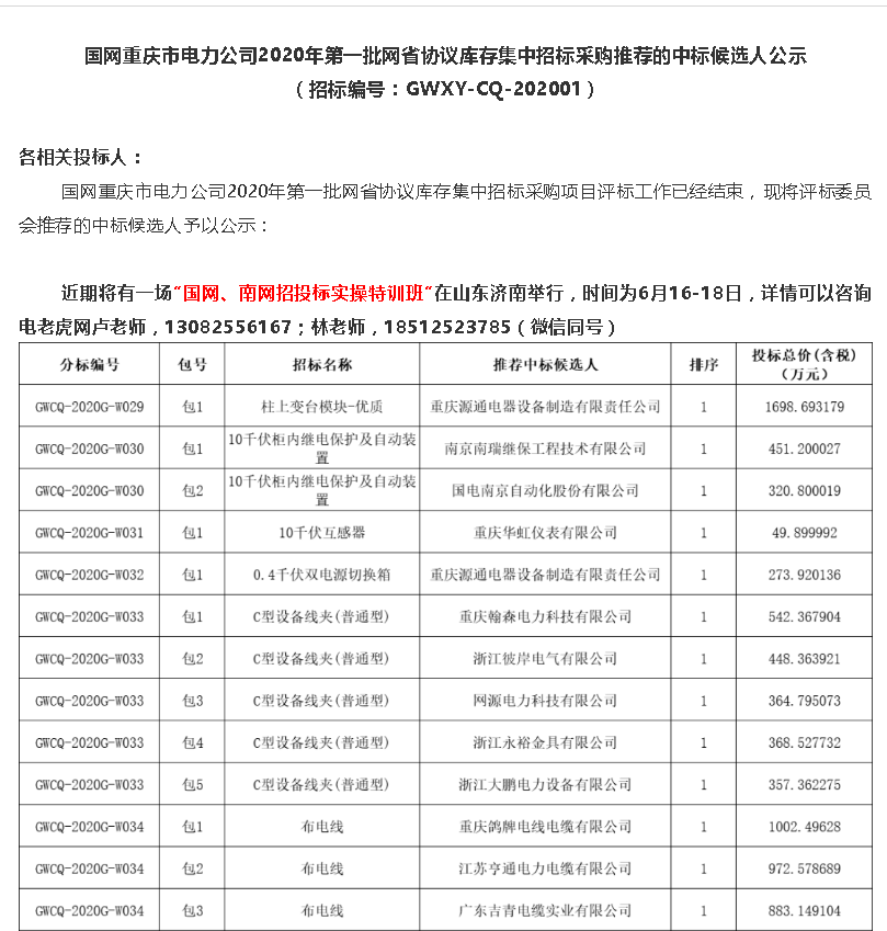 恭喜我司中標國網重慶市電力公司2020年第一批網省協議庫存集中招標采購
