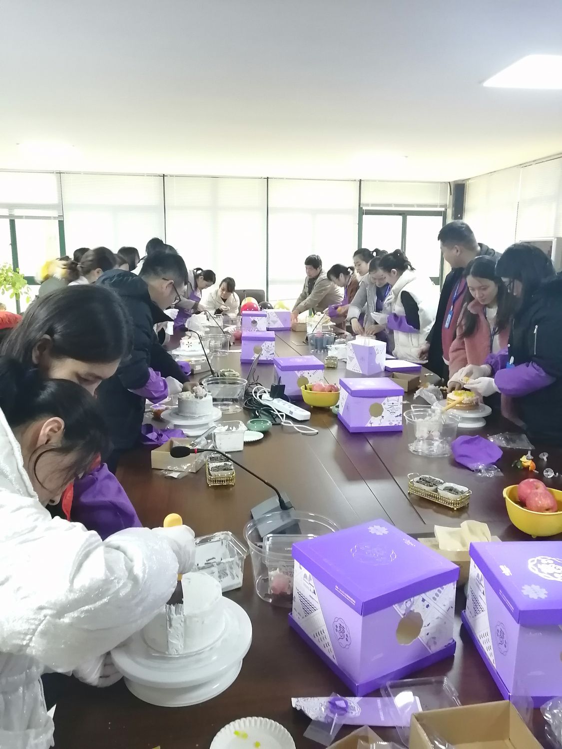 “DIY”屬於(yu) 壽星們(men) 自己的生日蛋糕,活動開始前烘焙老師簡單介紹了一些烘焙知識和蛋糕製作技巧,隨後大家在老師的講解中按組動手製作,在製作過程中大家開心的像個(ge) 孩子,搖身變成“麵點師”,塗抹奶油、做花邊、點綴水果,一個(ge) 個(ge) 色彩斑斕、創意滿滿的蛋糕映入眼簾,讓人垂涎欲滴。蛋糕DIY活動結束後,大家迫不及待的的展示自己新手製作的美味蛋糕。