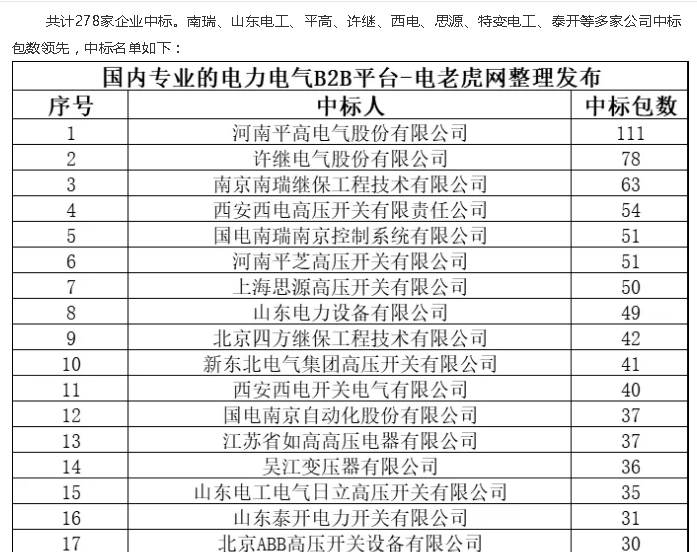 278家企業中標!國家電網2020年輸變電項目變電設備(含電纜)中標名單匯總!